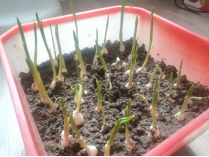 已经种出了两盆小蒜苗了