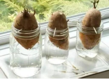 用几根牙签横着戳穿红薯放入一碗水中,