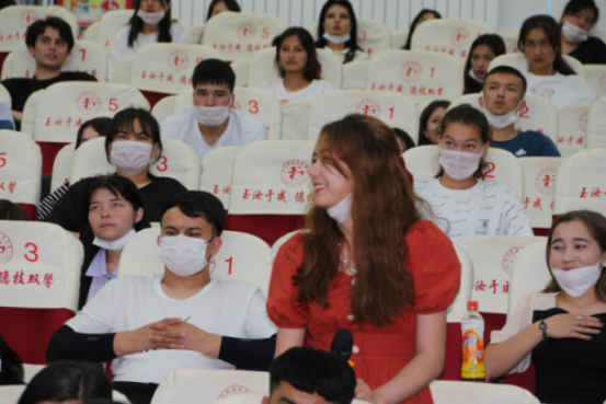 和田职业技术学院工艺美术系主任赵晟媛主持讲座,工艺美术系党支部书记及全体教师、学生出席讲座。