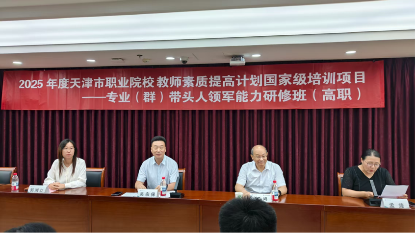 8月25日,2025年度天津市职业院校教师素质提高计划国家级培训项目——专业(群)带头人领军能力研修班(高职)在我校正式开班。校党委副书记、校长吴宗保出席并讲话,代表学校向培训班的顺利举办表示祝贺,对来自天津市22所高职院校42名专业带头人的到来表示热烈欢迎。学校继续教育中心和包印学院相关负责人、教师参加了开班仪式。