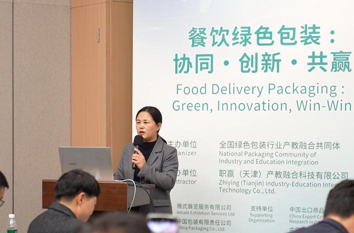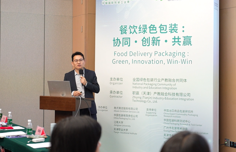 中国出口商品包装研究所所长助理刘天航以《绿色包装赋能品牌价值提升》为题,结合案例阐述绿色包装在产品安全、用户体验与品牌竞争力提升中的重要作用。