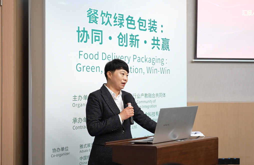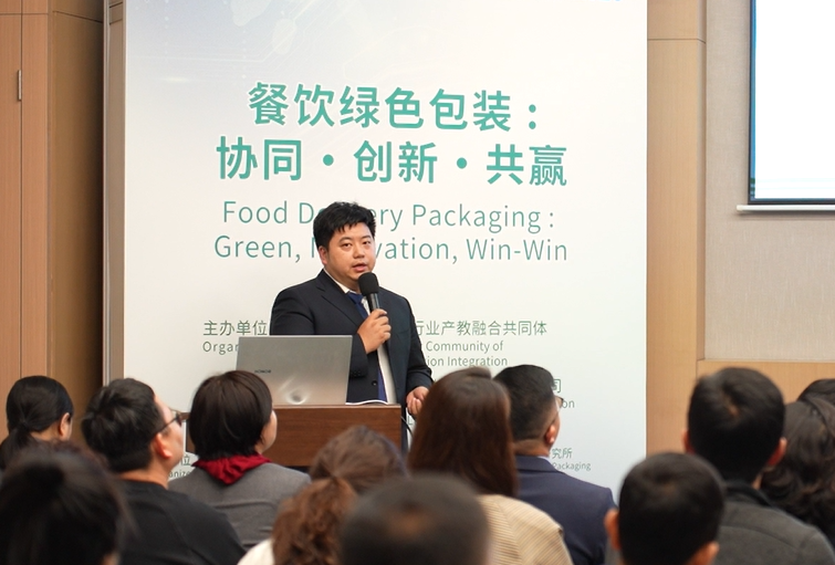 中国包装联合会副秘书长胡正阳以《绿色包装推动餐饮外卖行业高质量发展》作为论坛开篇。他表示,推动餐饮外卖包装绿色化,是响应国家“双碳”战略、满足消费者日益增长的环保需求、实现行业长远健康发展的必然选择。