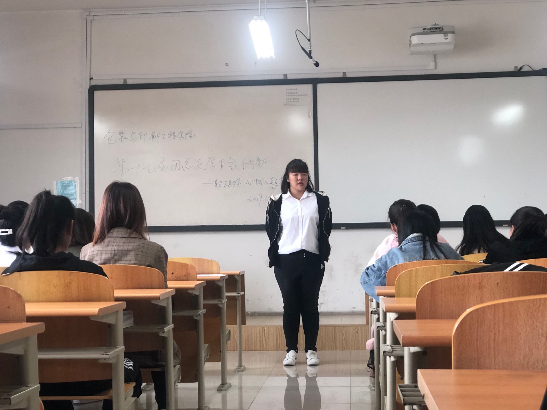 在之前学生会纳新宣讲的宣传下,使得许多19级的小可爱们在今天济济一堂,勇敢地向老师、学长学姐展示自己的才华