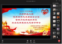 为了进一步发挥我校优秀青年志愿者的典型示范和导向作用,在全校学生中大力弘扬志愿者精神,同时为发掘在抗击疫情志愿服务活动中涌现出的优秀志愿者,激励全校青年学生担当作为,推动我校青年志愿服务事业发展,2019-2020年度天津职业大学“优秀青年志愿者协会分会”等奖项线上评审会于4月16日下午顺利开展,校团委负责老师、学院分管辅导员和校院青年志愿者协会主要负责人等70余人参加此次评审活动。